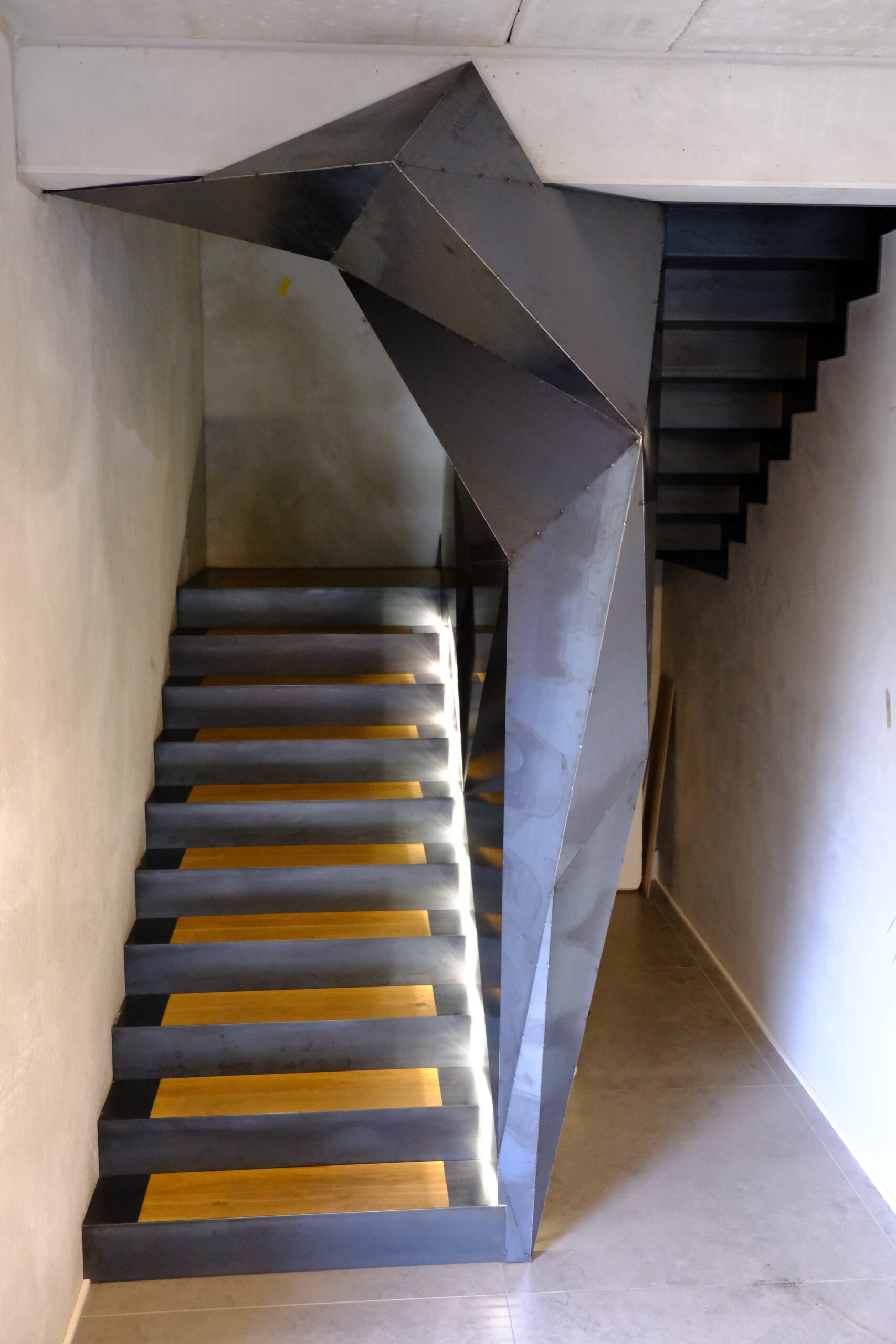 Stahl + Holzstufen (warm & modern)